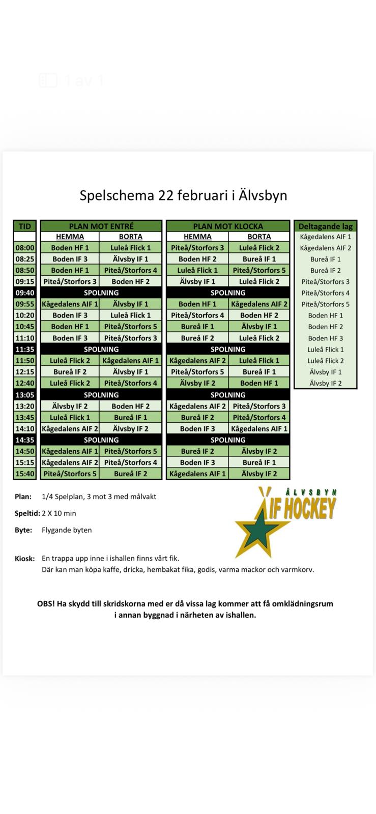 Spelschema - Älvsbyn - 24 Nov - Reviderad