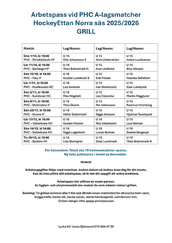 U18 och U15 bemannar GRILLEN på övre plan vid A-lagets hemmamatcher under säsongen 2025/2026.