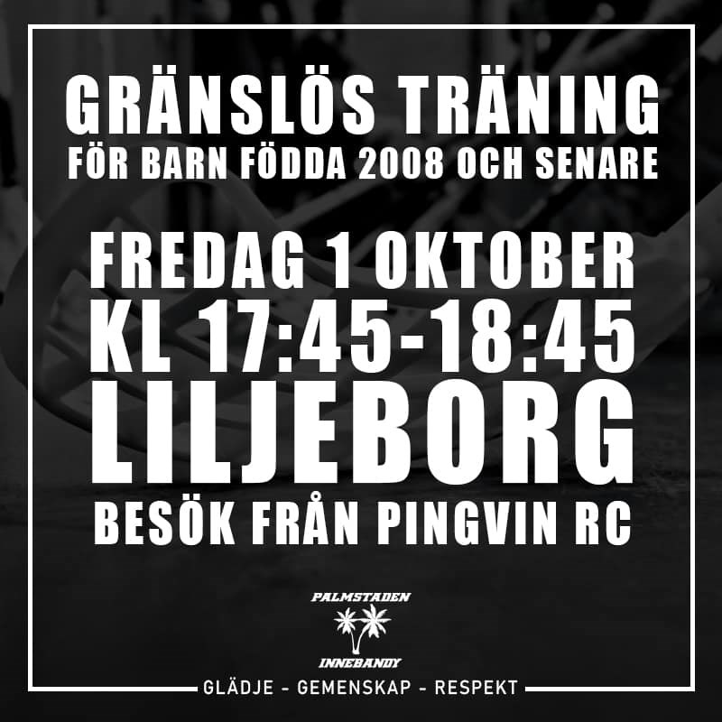 Vad händer denna gången? På fredag är det äntligen gränslös träning igen! Denna gången gästas vi av Pingvin RC. Ta med klubborna för det blir självklart innebandy också! Det blir en kul fredag! Pingvin Rugby Club & Palmstaden IK tillsammans! Tid: 17:45 - 18:45 Plats: Liljeskolan Vad är Gränslös träning? Gränslös träning är en satsning vi gör säsongen 21/22 och innebär arrangemang som förenar klubbens medlemmar över åldrar, färdighetsnivåer och ambitionsnivåer. Vi välkomnar alla medlemmar upp till 13 år. Vi kommer arrangera gränslösa träningar första fredagen i månaden. Vi kommer att spontanlira och fokusera på att bara ha kul tillsammans. Vi ska sudda ut gränserna mellan lagen och hitta den gemensamma glädjen till idrotten! Kan man vara där och titta? Om jag är kaffesugen? Det kommer att finnas kiosk och läktarplats för föräldrar och syskon som vill njuta av gemenskapen. Tänk dock på att hålla avstånd och använda sunt förnuft! Vi ses! #tillbakatillhallen