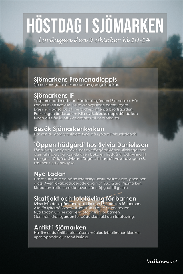 Fyll i din e-postadress för gratis uppdateringar om Sjömarkens IF HÖSTDAG I SJÖMARKEN / Promenadloppis