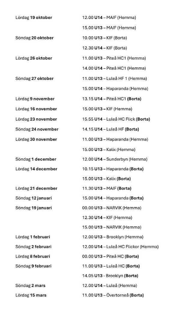 | Malmbergets AIF (borta) | 26 okt, 15:00 |