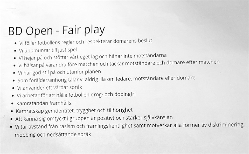 INCHECKNING Anmälan sker i Isborgen Isarena, Hellebergsvägen 6 GÄLLIVARE Fredag 1 mars kl. 08:00–18:00 eller lördag 2 mars kl. 07:00-12:00. DELTAGARKORT – deltagarbevis Varje deltagare och ledare får ett deltagarbevis (vilket också är matkuponger) vid incheckningen. Det skall visas upp vid entrén till förläggningen och till varje måltid måste deltagarbeviset uppvisas. Var rädd om kortet! FÖRLÄGGNING Förläggning för deltagare/ledare är på Sjöparksskolan och på Hedskolan. Anvisning om logi sker vid incheckning. Incheckning tidigast 15.00 på fredag. Kylskåp finns på förläggningarna. MAT Första måltiden är fredag lunch klockan 10:30-13:00. Övriga måltider som ingår är: Fredag: middag Lördag: Frukost, lunch och middag. Söndag: Frukost och lunch. Inga kvällsmål ingår. Föräldrar och supportrar kan köpa matkuponger. Maten serveras i Sjöparsskolans matsal i GÄLLIVARE. UTRUSTNING Varje deltagare tar med tävlingsutrustning för respektive idrott, sovsäck, luftmadrass eller liknande. Deltagarna sover på golvet i klassrum. Vilken skola ni hamnar på får ni veta vid incheckningen i Gällivare. Ett tips! är att kanske ta med ett snöre till upphängning av fuktiga kläder. Ett Tips! De som har uppblåsbara luftmadrasser, tag med något att lägga under madrassen, golvet kyler och deltagarna upplever det som kallt. VIKTIGT Det är väldigt viktigt att samtliga deltagare och ledare håller stenhårt på god ordning och gott uppträdande. Lilla VM har den traditionen och den skall vi värna om. Vi är alla skyldiga att ”stå upp” mot det fina förtroende värdkommunen Gällivare visar oss. Utanför förläggningarna gäller samma regler med ordning & uppträdande. EGEN HEMSIDA: www.lillavm.se Egen hemsida där alla resultat under tävlingarna kommer att uppdateras. F10-11 Fotboll 11 feb 2024 0kommentarer