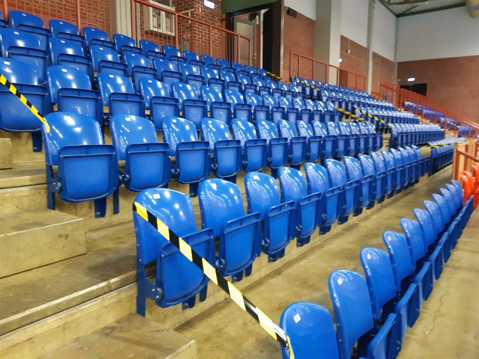 Vi följer Folkhälsomyndighetens riktlinjer och har därför justerat läktaren på Södans B-hall. Se bild.