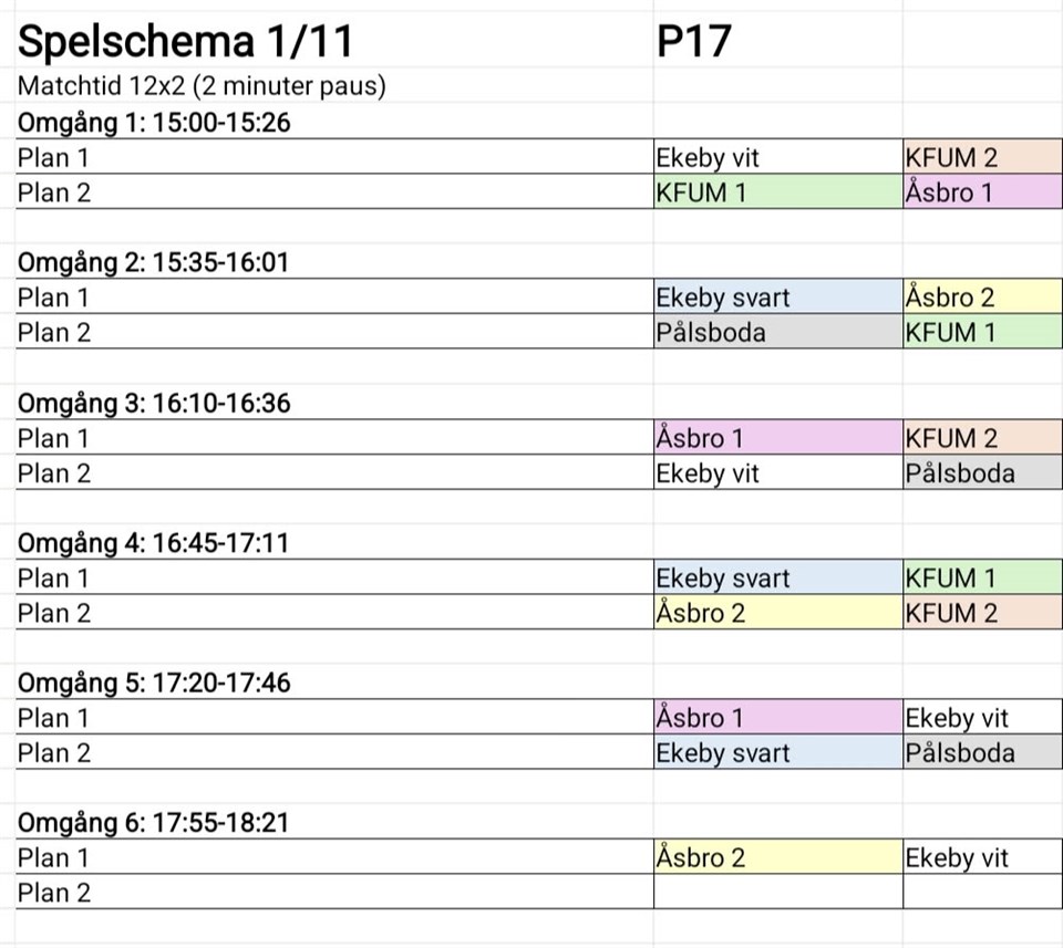 | Poolspel Ekeby IF | 1 nov, 14:45 |