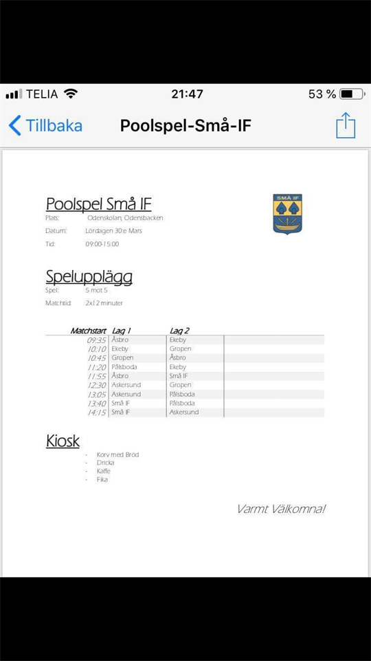 Kl 10:00 i pålsboda Kl 10:30 i Odensbacken Mvh 10/11 29 mar 2019 4kommentarer