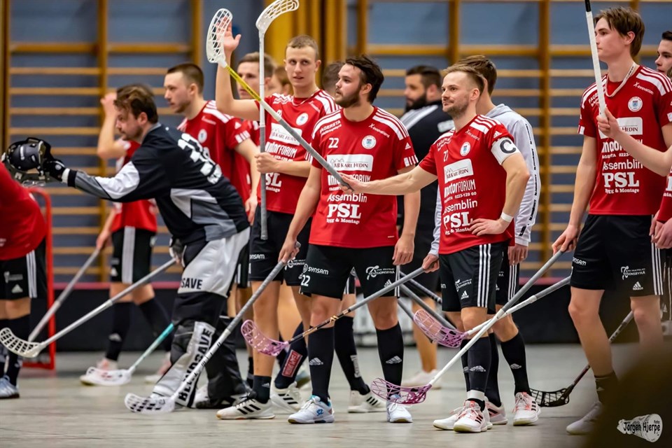 Foto: Jörgen Hjerpe Redan innan matchstart så märks det tydligt att samtliga har fokus på rätt saker inför dagens uppgift. På förhand vet vi att det kommer bli en jämn batalj mellan två spelskickliga lag som har tre viktiga poäng att spela för. En rolig innebandymatch med andra ord. Holmberg hoppar in i kassen och period 1 kan starta. När klockan står på 08:55 är det Noa Kempe som ger oss ledningen efter att Oskar Utter fyller på fint efter vänsterkanten. IBK Köping kvitterar till 1-1 tid 12:30 och innan periodslut är det Oscar Abrahamsson som enkelt styr in 2-1 bakom Köpings målvakt och åter är det Oskar Utter som står för framspelningen. En bra genomförd första period där vi går in i paus i ledning trots en jämn matchbild där båda lagen skapar en hel del chanser. Efter drygt halva andra perioden är det Köping som kvitterar till 2-2. 12:14 är det Rasmus Enviks tur, i powerplay, att åter ge oss ledningen till 3-2 efter framspelning av Fredrik Åhlberg när klockan visar 12:14. 17:30 gör Julius Wallin 4-2 efter fin prestation av Casper Eriksson vilket är resultatet som står sig perioden ut och åter kliver vi in i periodpaus i ledning. En fortsatt jämn tillställning även i andra perioden. Några små justeringar i defensiven leder till att vi håller Köping utefter sarg samtidigt som vi själva skapar målfarliga spelvändningar. 03:52 in i den tredje perioden åker vi på en utvisning där Köping reducerar till 4-3 i numerärt överläge. Dock dröjer det inte länge innan Fredrik Åhlberg ökar på vår ledning till 5-3 efter assist av Daniel Snickars och klockan står på 08:01. Det är svårt att hinna med när Oscar Abrahamsson sätter fart och det var just det som Köping inte gjorde. 13:21 in i den tredje perioden blir Abrahamsson fälld framför Köpings mål och vi blir tilldömda straff som Fredrik Åhlberg inte gör några misstag med utan 6-3 är ett faktum. Köping reducerar till 6-4 och ges 17:40 chans till spel i numerärt överläge där man väljer att spela både 5 mot 4 och 6 mot 4 där vi spikar igen i boxplay. I fortsatt spel i numerärt underläge, 6 mot 5, avslutar Noa Kempe matchen som han började den genom att fastställa slutresultatet till 7-4 i tom bur 19.36. En hel del skottäck, hårt jobb i defensiven och avgörande räddningar av Holmberg i mål får summera period 3. Tre nya poäng, seriesegrare och obesegrade på hemmaplan. En svårslagen lördag. Runt 300 personer på läktaren var med och tog oss till seger idag. I och med dagens vinst får vi även hemmafördel i kvalspelet vilket betyder att nästa avgörande match kommer få spelas framför er igen. Givetvis hoppas vi på samma stöd som vi har haft under hela säsongen både på borta- och hemmaplan. Tillsammans avslutar vi denna säsong på bästa möjliga sätt för det roliga har bara börjat! Mer information om kvalspelet kommer. På återseende! Tack Jörgen Hjerpe för att du återigen fanns på plats.