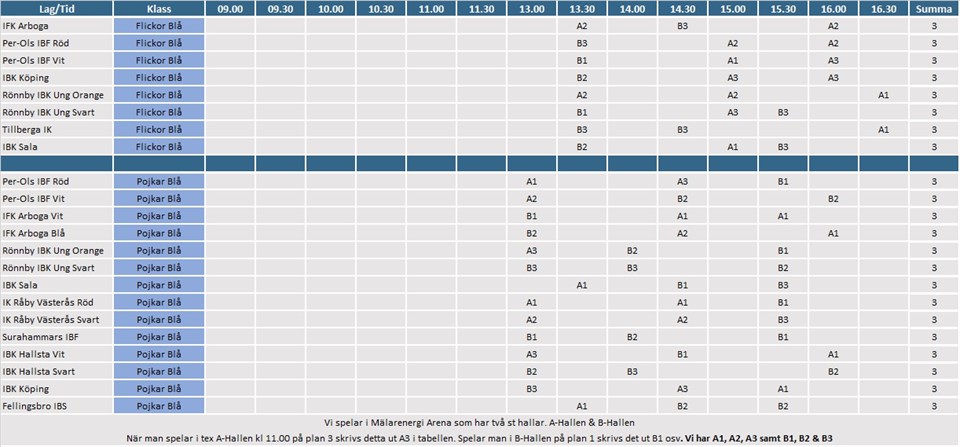 Nu har vi fått schema till poolspelsavslutningen. Vi kommer spela på söndag den 24/4 med en medaljutdelning som start kl:12:00. Vi har anmält två lag eftersom vi är så många. Båda lagen kommer spela 3 matcher var och matchtiden är 12 minuter. Vi spelar i Flickor Blå. Matchtider är följande för båda lagen: 13:30, 15:00, 16:00. Det kommer att finnas en kafeteria öppen med lättare mat. Det finns även möjlighet att köpa grillad hamburgare och korv utanför arenan. I länken nedan hittar ni mer information om dagen: Poolspelsavslutning F-11/14 13 apr 2022 0kommentarer