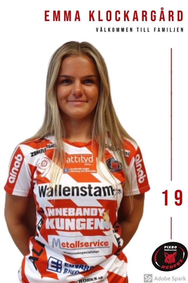 Pixbo Wallenstam Akademi Damsektionen presenterar ytterligare ett nyförvärv inför säsongen 2020/2021. Varmt välkommen säger vi till Emma Klockargård. Emma har de senaste säsongerna spelat i Lindome IBK men väljer nu Pixbo Wallenstam inför kommande säsong. ________________________________________ Namn: Emma Klockargård Född: 2002-09-09 Position: Forward Moderklubb: Lindome IBK Meriter: 3:de plats SDF-SM med Västsvenska Innebandyförbundet. Välkommen till rävfamiljen Emma. Du har spelat de senaste säsongerna i Lindome IBK. Vad fick dig att byta klubb och varför föll valet på Pixbo Wallenstam? Det var självklart inget lätt beslut att lämna Lindome men det var ett antal saker som föll på plats samtidigt och jag tror att ny miljö kommer ge lite extra inspiration och utveckling. Pixbo presenterade ett bra upplägg och struktur som jag tror kommer passa och utveckla mig som innebandyspelare, dessutom känner jag många tjejer i Pixbo sedan distrikt. Vad är dina styrkor som innebandyspelare och vad tror du att du kan bidra med till laget? Hög fart, mycket rörelse och energi och vilja att vinna, pressa fram misstag, sno några bollar samt ett och annat bra skott. Vad har du för personlig målsättning med den kommande säsongen? Min målsättning är att utveckla alla delar i mitt spel och ta nästa steg som innebandyspelare. Vad ser du mest fram emot med laget och vilka förväntningar har du inför säsongen 2020/2021? Jag ser fram emot DJ18 och siktar på ett guld. Mina förväntningar på säsongen är att säkra en plats i Allsvenskan inför nästa säsong. Tack för pratstunden Emma och stort lycka till inför den kommande säsongen. Redaktionen passade även på att fråga coach Emil Larsson vad han tror att Emma kommer att bidra med i Damakademin under kommande säsong. Det är extremt roligt att Emma valde att fortsätta sin satsning hos oss i Pixbo. Det ska bli väldigt intressant att följa en Emma som är mer taggad än någonsin nu när hon kommit tillbaka helt från sin skada. Emma är en seriös och ambitiös spelare som kommer bidra till vårt lag med en tydlighet i sitt spel och en härlig vinnarmentalitet. Emma är spelare som ligger helt i linje med vad vi ville få in i våran trupp och kul att en sån talang i regionen väljer att komma till oss. - Emil Larsson
