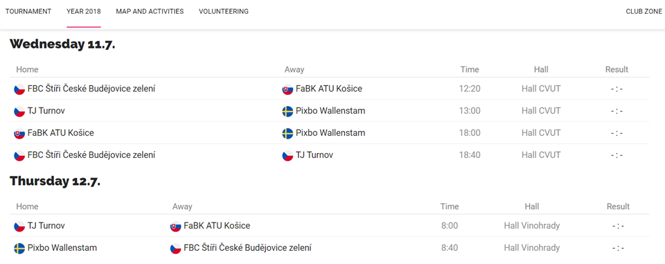 Hej Nu har äntligen spelschemat kommit - finns att hitta på länken nedan: https://www.praguegames.cz/en/vysledky Vi är i grupp B15F Med vänliga hälsningar Annelie Herrar Utvecklingslaget - PM (GAMMAL) 28 jun 2018 0kommentarer