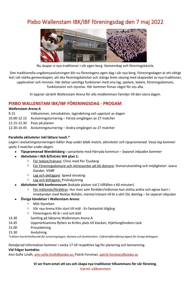 Hej 7/5 är det föreningsavslutning där vi stänger årets säsong med en flera aktiviteter under dagen, både för spelare, ledare och föräldrar! P10 14 apr 2022 0kommentarer