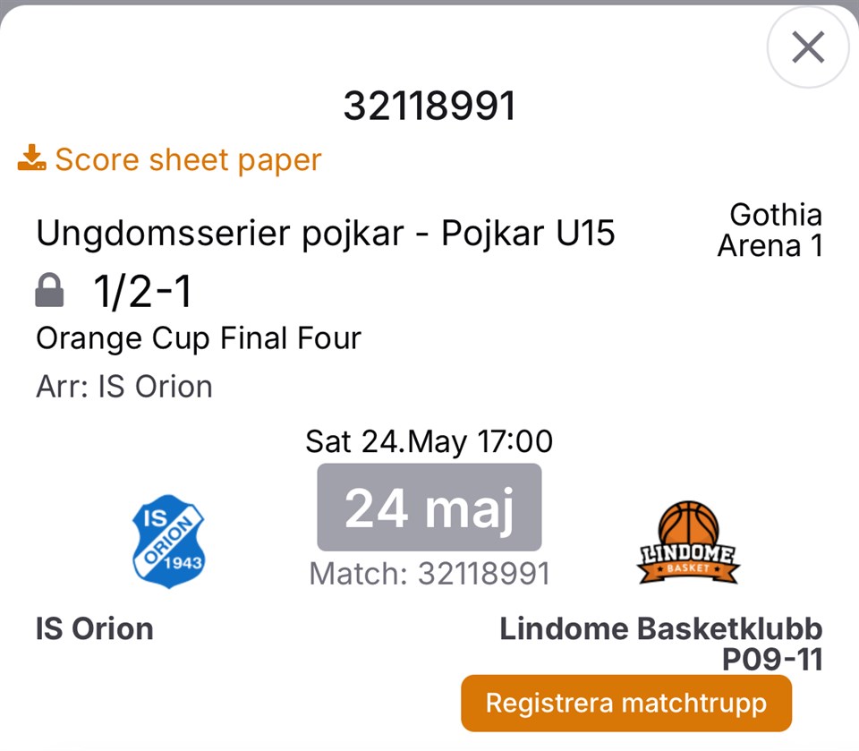 Klicka på bekräftelselänken i det mejl vi skickat dig för att börja ta emot uppdateringar från Lindome Basket HU15 P09-11.
