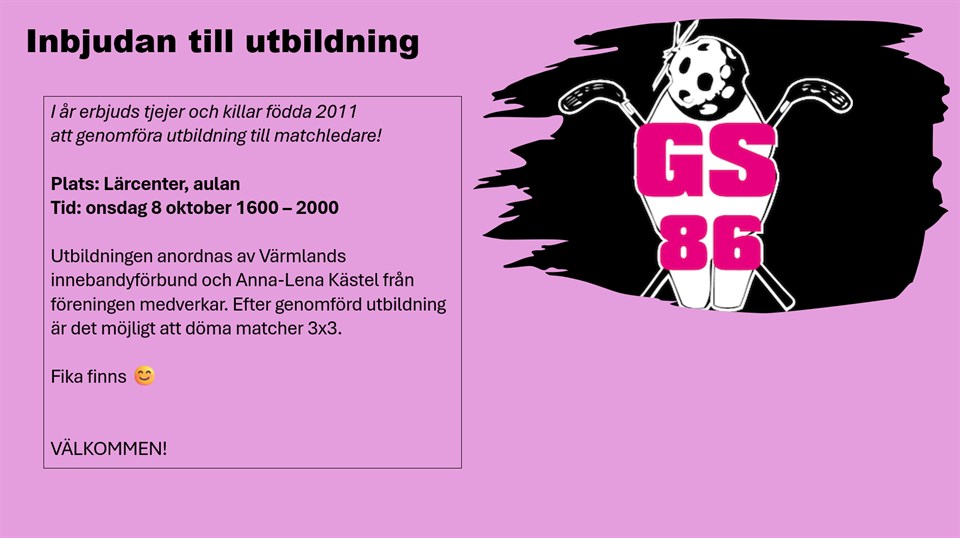 Nu är det dags för matchledarutbildning (domare). Se detaljer i bilden.