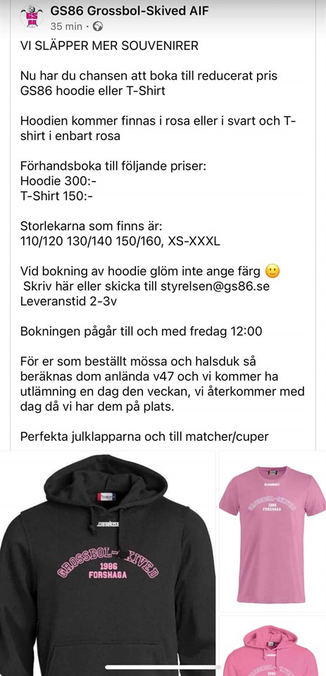 Hej, klubben säljer kläder, se bild. Pojkar 11 6 nov 2024 0kommentarer