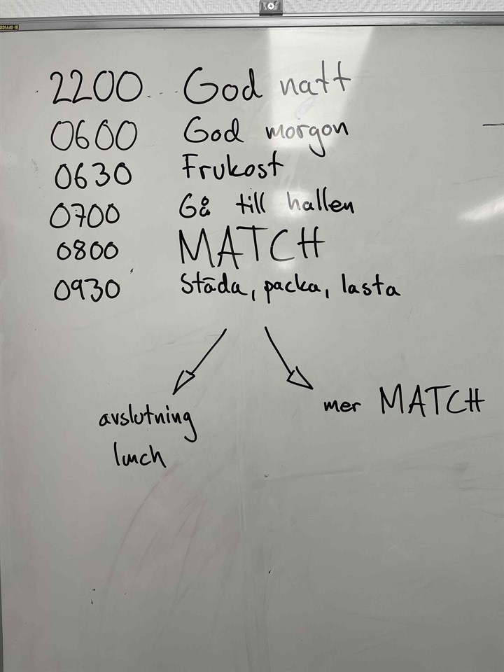 Här är tiderna för morgondagen. Föräldrar och bilar behöver vara på plats vid boendet för lastning från ca 0930. Pojkar 11 13 apr 2024 1kommentar