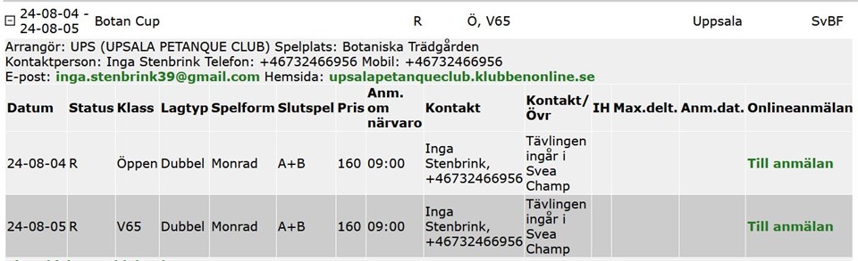 Hej alla, Vill ni spela i Botan Cup? Se info och länk nedan. https://www.sbfonline.se/Tavlingskalendern.aspx Sommarhälsningar/Mikael för PRI Prins Bertils Bouleclub 7 jul 2024 0kommentarer