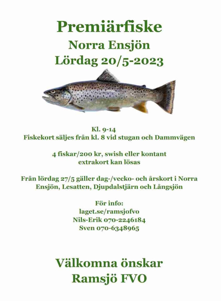 Premiärfiske Norra Ensjön lördag den 20/5 Ramsjö FVO 15 maj 2023 0kommentarer