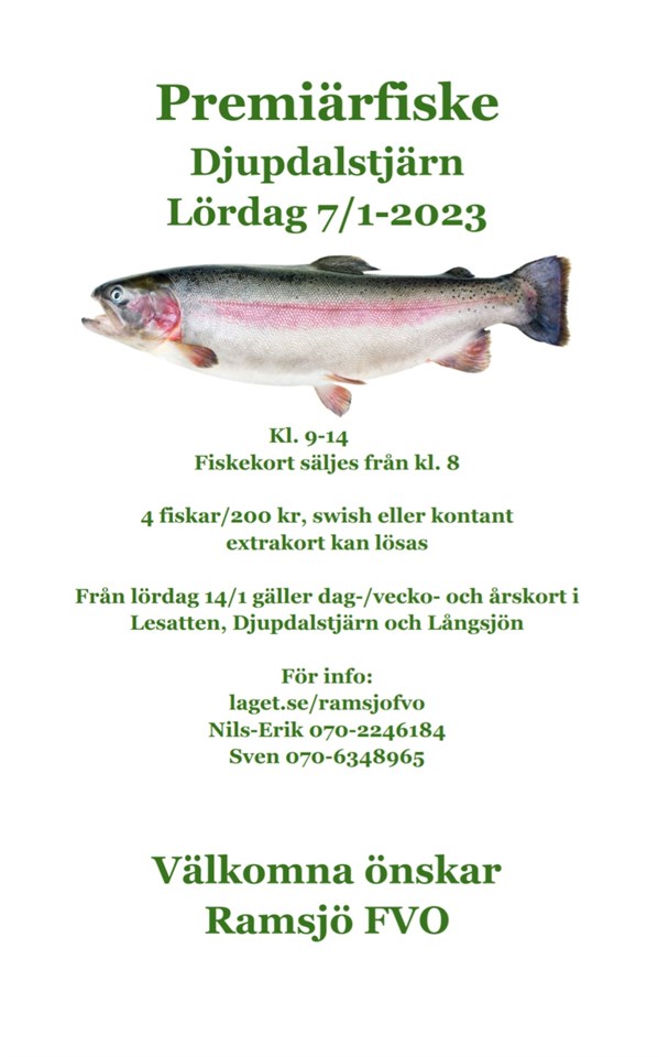 Ramsjö FVOF anordnar premiärfiske i Djupdalstjärn lördag 7/1-2022. Ramsjö FVO 29 dec 2022 1kommentar