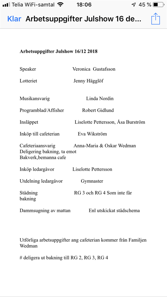 Arbetsuppgifter RG Grupp 4 5 dec 2018 0kommentarer