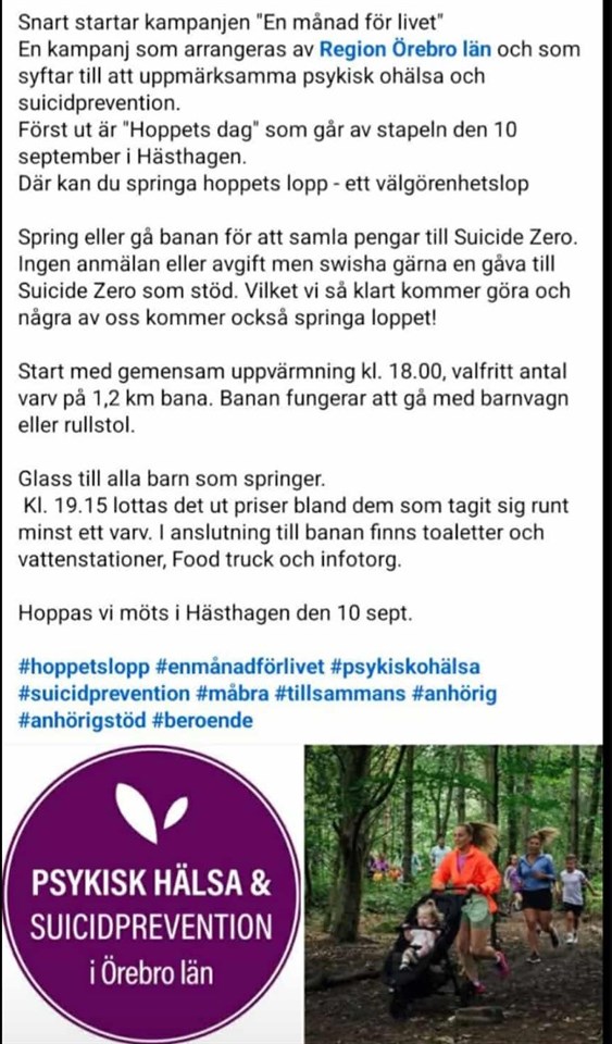 Snart startar Region Örebro kampanjen En månad för livet som syftar till att uppmärksamma psykisk ohälsa och suicidprevention.