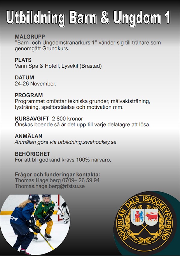 Är ni intresserad av att gå utbildningen meddelar ni mig (för att vi ska kunna ha kontroll på kostnaderna) men ni behöver själva anmälan er via utbildningsportalen på utbildning.swehockey.se