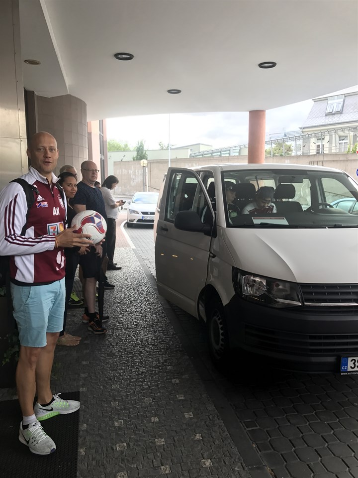Skickar här en liten rapport från Prag. Nedresan gick hur smidigt som helst, alla fick sina väskor och klubborna kom fram. 👍 Vi möttes av en engelsktalande representant från Prague Games som åkte med i bussen som tog oss till hotellet. Jättefint hotell som ligger 4-5 tunnelbane stationer från Gamla Stan. Igår måndag fick en lugn start med frukost vid 9:30. Sen var det fria aktiviteter fram till 13 när killarna åkte till träningspasset i en hall som var ett tält. Supersvettigt men bra träningspass. Solen strålade och det är varmt och fuktigt, viktigt att dricka mycket vatten. På eftermiddagen åkte vi alla in till Gamla stan och åt middag på lite olika ställen. Allt ifrån asiatiskt, pizza, hamburgare och risotto åkte ner i våra hungriga magar. Lite häng på stan och sen hem till hotellet igen. Idag tisdag vaknade vi till ett regnigt Prag men varmt. Nu har vi checkat in i en fin hall med luftkonditionering dock inga läktare, lite gympasals känsla. Killarna är nog liiite nervösa. Vi har SÅ duktiga killar, de sköter sig kanon! Kramar från ett soligt, fuktigt, regnigt och ett mycket vackert Prag.