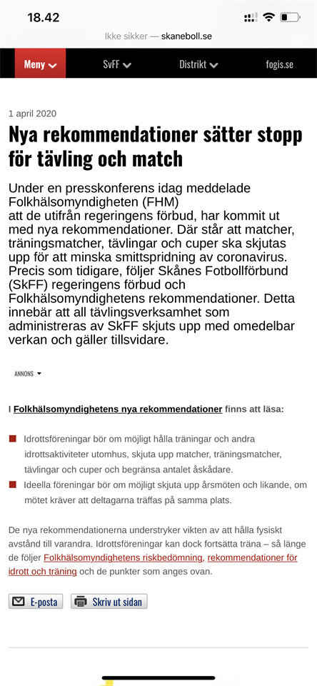• Träningen och matcher inställt