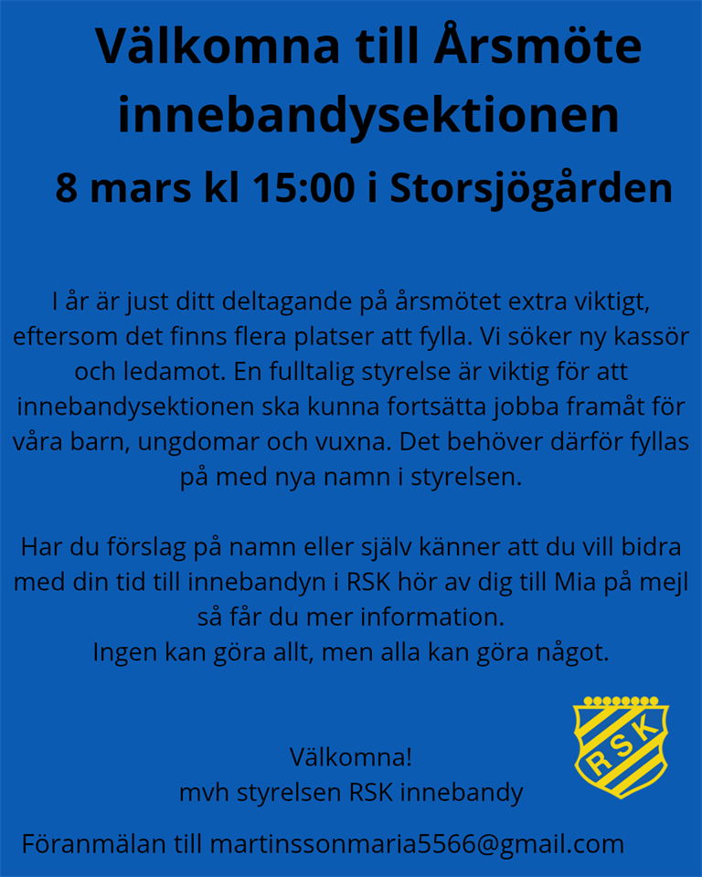 Fyll i din e-postadress för gratis uppdateringar om Rydboholms SK (Innebandy)