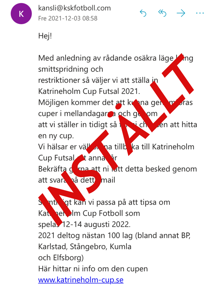 • Futsalcup 29/12 inställd
