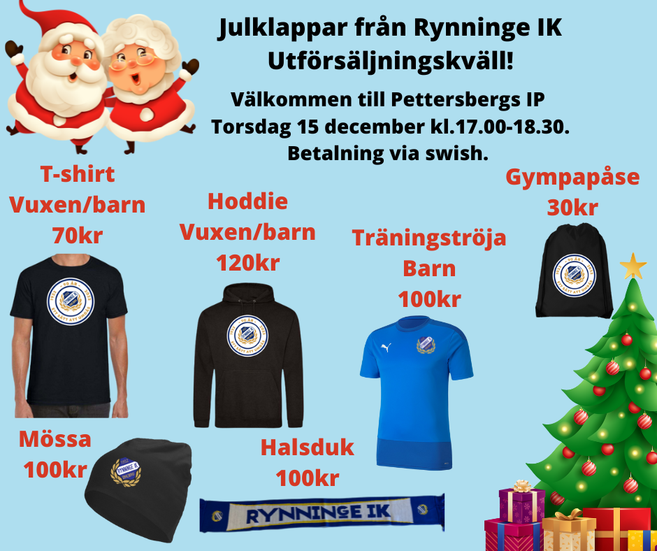 Välkommen till Pettersbergs IP på torsdag och köp årets julklapp! Det finns inte så många julklappar kvar så det är först till kvarn som gäller. T-shirt Dam storlek: XL / L / M / S T-shirt Herr storlek: XL / L / M / S T-shirt Barn/Junior: 128 / 140 / 152 / 164 / 170 Hoddie Dam storlek: XL / L Hoodie Herr storlek: L / M Hoddie Barn/Junior storlek: 128 Träningströja Barn/Junior storlek: 116 / 140 / 164 / S / M Gympapåse: 60st kvar Halsduk: 9st kvar Mössa: 75st kvar God jul önskar Styrelsen! PU 15/16 8 dec 2022 0kommentarer