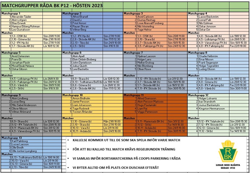 • Matchgrupper & matcher hösten 2023