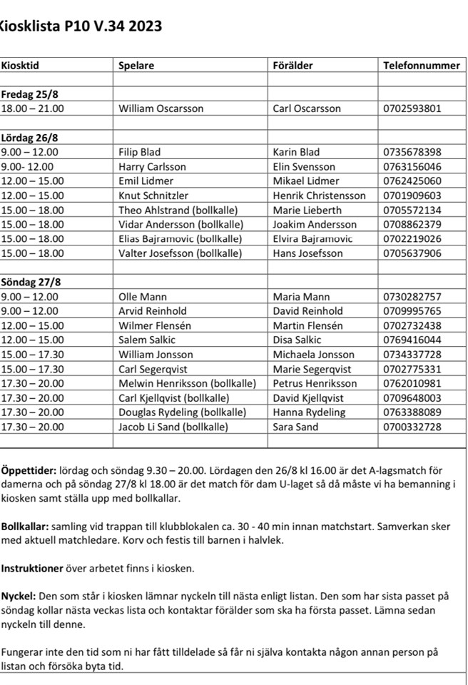 Här kommer en lista av vilken killar tillhör vilken match grupp och vilken matcher dessa grupper har till hösten. Det kan kommer förändringar men i nu läget ser allt ut så här. Grupp 1 (Mattias/Carl) Olle Jansson, William Oscarson, Angelo, Douglas Rydeling, Emil Lidmer, Jacob Li Sand, Martin Hamnered, Melvin Henriksson, Olle Fredriksson, Orlando Yüksel, Valter Josefsson, Vidar Andersson. Grupp 2 (Patrik/Robin) Arvid Klasson, Silas Svensson, William Salegård, Adam Larsson, Alvin Nordlund Enlund, Atinder Singh, Carl Segerqvist, Harry Carlsson, Johannes Rydberg, Salem Salkic, Sander Walther, Theo Ahlstrand, Wille Hasselgren. Grupp 3 (Per/Magnus) Karl Kargård, Filip Berg, Arvid Persson, Bertil Bringsved, Carl Edlund, Carl Kjellqvist, Elias Bajramovic, Filip Blad, Filip Dahlin, Oliver Axtelius, William Blasini. Grupp 4 (Stephen/Marcus) Liam Rowe, Edgar Ottosson, Adrian Falk, Alexander Nygren, Arvid Reinhold, Knut Schnitzler, Malte Eriksson, Olle Mann, Pontus Staberg, William Jonsson, Wilmer Flensén 19/8 Vara SK Svart Hemma Grupp 2 20/8 Källby IF Hemma Grupp 4 20/8 LFK Röd Borta Grupp 3 20/8 Skövde AIK Röd Borta Grupp 1 26/8 Stenstorp IF Röd Borta Grupp 2 27/8 Vinninga AIF Hemma Grupp 1 2/9 Ulvåkers IF Röd Hemma Grupp 2 3/9 Skara FC Röd Hemma Grupp 3 3/9 Ik Gauthiod Hemma Grupp 4 3/9 LFK Svart Borta Grupp 1 6/9 Varnhem/Axvall Borta Grupp 3 10/9 Örslösa-söne IK Hemma Grupp 3 10/9 Tibro AIK Vit Borta Grupp 2 11/9 Levene/Skogslund Borta Grupp 1 12/9 Götene IF Blå Borta Grupp 4 16/9 IF Tymer/Lerdala Hemma Grupp 2 17/9 Skara Blå Hemma Grupp 1 17/9 Nossebro IF Borta Grupp 3 17/9 Skara Vit Borta Grupp 4 22/9 IFK Falköping Blå Borta Grupp 1 23/9 Elmer-Fåglum Hemma Grupp 3 24/9 Saleby/trässberg Hemma Grupp 4 24/9 IFK Skövde Vit Hemma Grupp 2 30/9 LFK Vit Borta Grupp 4