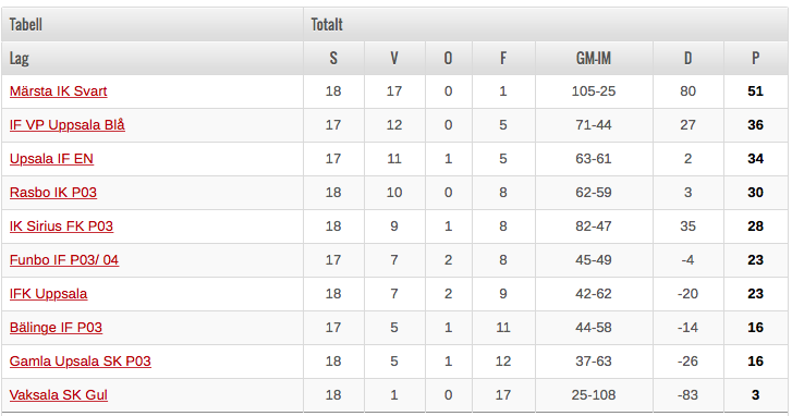 Efter en grym insats i sist matchen mot Märsta har vi nu avslutat en bra säsong. Många har gjort stora framsteg och vi har efer en knackig period hållit ihop spelet riktigt bra andra halva av serien både i anfall och försvar. Det tycke jag speglas i sista matchen då vi bara släpper in 3 mål mot ett lag som gjort totalt 105 mål på 18 matcher (alltså snitt 5,8mål/match). Kul också att flera börjat i år och kommit in fint i laget. Vi slutar 4 i serien vilket jag tycker är bra. Vi gjorde nog lite avtryck första halvan för moståndet var betydligt tuffare på hösten tycker jag. Jag söker speldag och motstånd för 11-manna matcg och informerar så snart när det är klart. Som avslutning tänkte vi att vi går tillsammans på Sirus - Örgryte i superettan den 17/10. Skickar separat kallelse. Vi vill så klart tacka Mikael Carlsten för sina många insatser genom åren och det är tråkigt att du och Martin valt andra intressen, men dörren står alltid öppen! MVH Robert, Karin, Niklas B-lag Herrar Div 7 27 sep 2016 0kommentarer