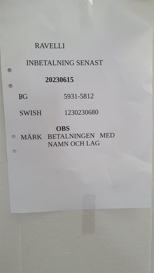 Hej, Vi har fått meddelande om att Ravelli beställningen troligen kommer på torsdag till kokhuset (kiosken på remslevallen). Vi har fått information om att det är viktigt att ordna med leverans och betalning snarast. Ni ska själva göra EN samlad inbetalning för hela er försäljning till förningen, se bifogad bild. Betalningen ska märkas med namn och lag (mycket viktigt). F-13 23 maj 2023 0kommentarer