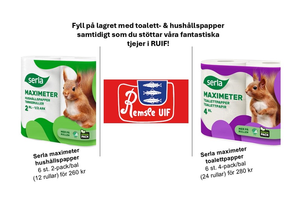 Vi satsar väl på rekord i år och supervinst till Ruif genom att vara den förening i Sollefteå som säljer mest toalett- och hushållspapper! Förra året beställde vi hem 72 pall och tillsammans kan vi slå det!