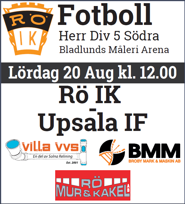 Näst på tur att komma till Bladlunds Måleri Arena på Ekevallen i Rö är Uppsala IF. Tidigare i maj vann Uppsala IF hemma med 3-0 mot oss. Nu är det dags att vända på siffrorna och ta hem 3 poäng och visa att vi vill vara med och kriga om en placering i toppen. Matchen är nu på lördag 20/8 och den startar 12:00. Varmt välkomna! /Rö IK Herrar 16 aug 2022 0kommentarer