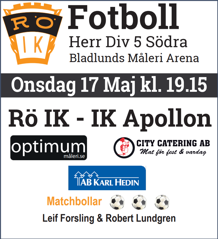 Efter en stark andra halvlek fick vi med oss 1 poäng mot Enköping i helgen. Nu redan på onsdag tar vi oss an IK Apollon hemma på Bladlunds Måleri Arena på Ekevallen i Rö. Matchen startar 19:15 Väl mött! /Rö IK Herrar 15 maj 2023 0kommentarer