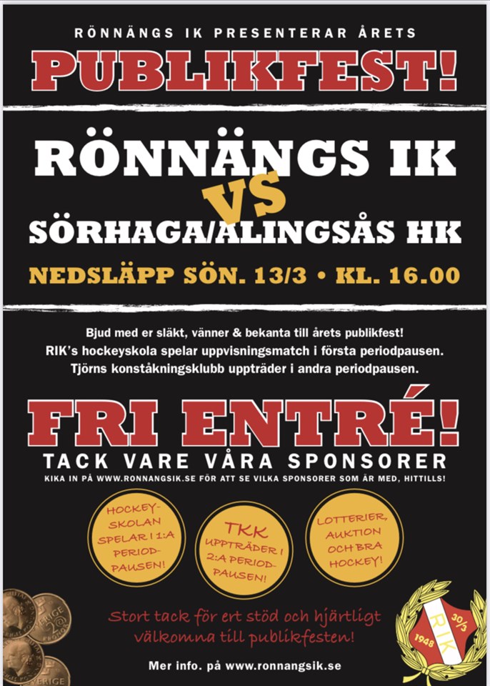Säsongen höjdpunkt! Äntligen är det dags för en ny publikfest i Tjörns ishall, våra sponsorer och partners bjuder på inträdet! Sista matchen i alltrean som kommer avgöra fortsatt kval eller inte! För motståndet står Sörhaga/Alingsås. Vill ni vara med och bidra hör av er till: Erik Bergström tele 0723612601 #gorikgo #hejarönnäng Klar sponsorer 13/3 Hermansson truck & Maskin AB Hermansson truck & Maskin AB Erik Bergström Conturas AB William Grundberg Bomans Motor & Maskinservice AB Pontus Strömbom Hermansgårds Entreprenad AB Hermansgårds Entreprenad AB MC Vent EMTAB Torbjörn Bergström GG 330 Carmona Asta Fishing Hans Ivarsson Henrik Kristensson Josjö Fiske AB Jokri Fiske AB Johan Rothlind Fam Lasse Mattsson AB Viktor Thedin Ribeck Bygg AB Zeke Varg Folke Patriksson Folke Patriksson Petter Orvefors Petter Orvefors Rylanders El I skärhamn AB Roland Karlsson Byggnadsfirma AB Klädesholmens Fisk & Skaldjur Holmevik AB Orust Golv AB Jonas Nilsson Oskar Jansson Charterfrakt Baltic Carrier Charterfrakt Baltic Carrier Familjen PD Familjen PD Alfredsson Bygg AB JS Byggservice på Tjörn AB Rameko Industriservice Bärgnings-Niklas AB Raymond Bygg AB Seniorbolaget AB Bjurfors Tjörn Savoy Land & Sjöentreprenad AB First Trade AB Ro-Ro International AB Familjen JMO Den Franska Kocken Västkustens drivmedel & Energi AB Dekorex Blommor Lidéns Begravningsbyrå Fam Robertsson Rex fisk AB Slöjdjohan Olssons Trävaror Tjörns Sparbank Tjörns Sparbank Tjörns Sparbank Västkusten Brygg & Transport Kyrkesunds Marina Arkö Räkor Liberalerna Tjörn Fastighets AB Måseskär K-Bil AB Moln’it Berndtsson Rederi AB Almö livs Almö livs Specter AB Lottens kroppsvård Mattias Pettersson Linda Pettersson ENP Industrisystem AB Fam Strömberg G & M Måleri & Snickeri G & M Måleri & Snickeri Ica Nordeviks K-L Bergström Hans-Peter Karlsson Lena Karlsson 222223 XL Bygg Skärhamn, Bleket & Varekil XL Bygg Skärhamn, Bleket & Varekil Bohusassuransen Bohusassuransen Börjesson Plåt & Svets AB Börjesson Plåt & Svets AB Mossholmens Marina Mossholmens Marina Tarbit Shipping AB Fam Grundberg Fam Jansson Myggenäs färg & måleri AB Processbygg Tjörn AB Per Engblom consulting RS RAIL AB Panos company städ AB Myggenäs Gård AB Myggenäs Gård AB Myggenäs Gård AB Myggenäs Gård AB Viking supply Ships Gym Access Rönnäng Pingstkyrkan Rönnäng A-lag Herrar 17 feb 2022 0kommentarer