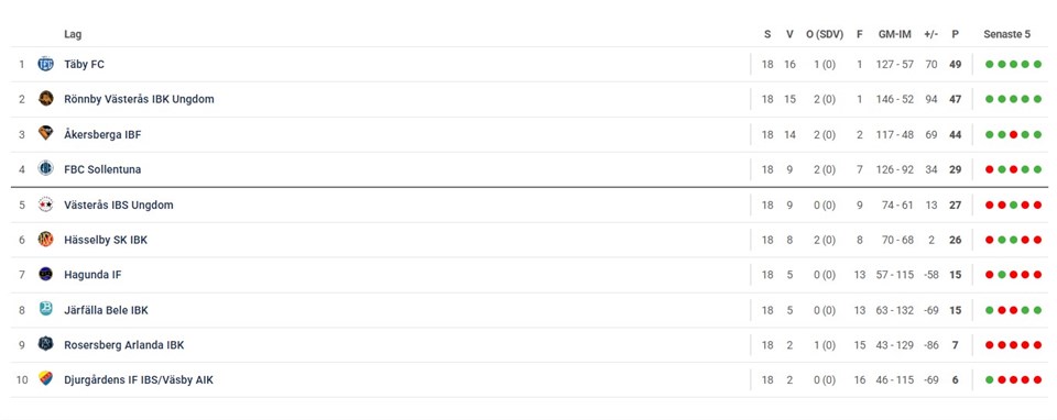 | 10. | (5) | Västerås IK Ungdom |