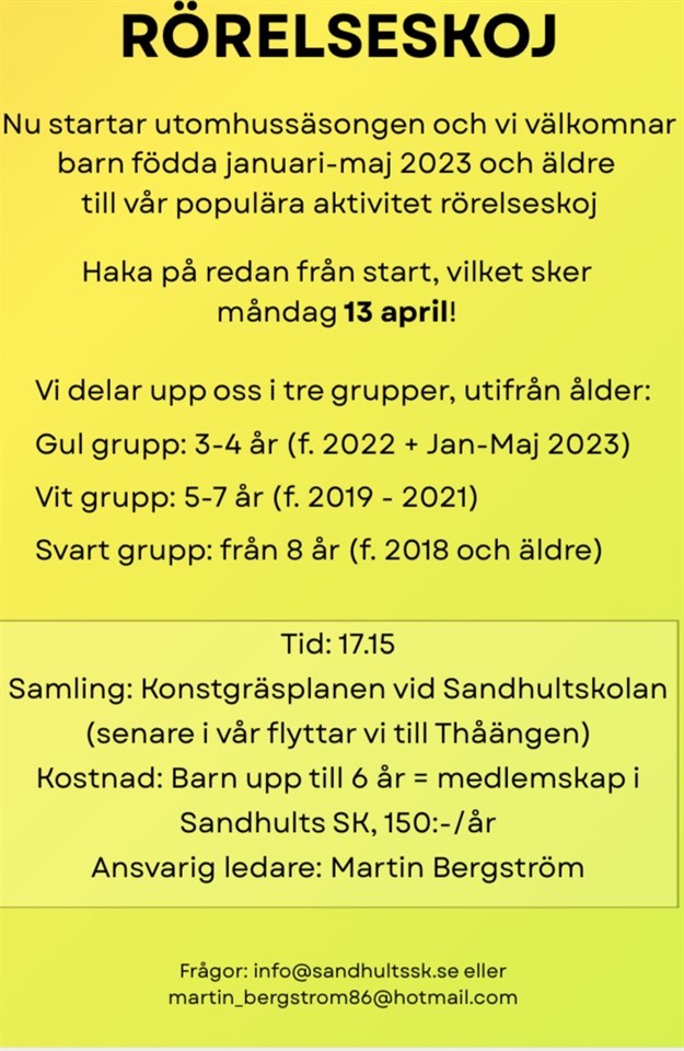 Fyll i din e-postadress för gratis uppdateringar om Sandhults SK RörelseSkoj 7-10år