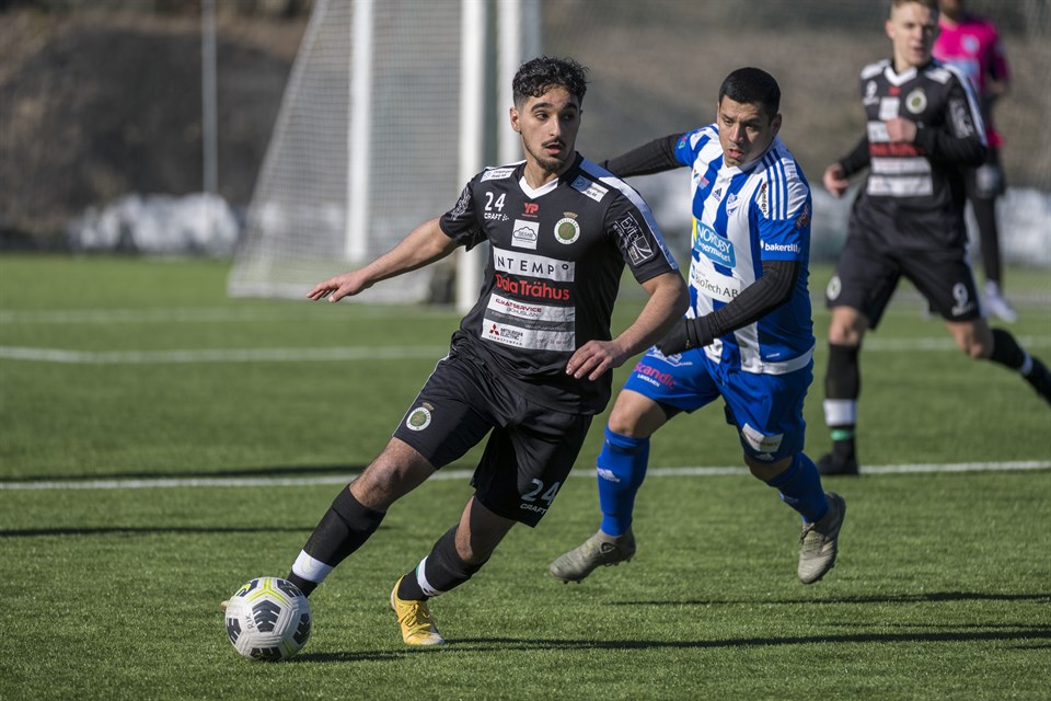 Rosseröds IK och IFK Strömstad delade på poängen i DM efter en mållös tillställning på Fridhemsvallens konstgräs i säsongens första tävlingsmatch. Matchen var relativt jämn spelmässigt men där båda lagen hade svårt att skapa några riktigt klara målchanser. Strömstad hade två jättelägen i första halvlek, men där duktige målvakten i Rosseröd Craig Stephenson gjorde två jätteräddningar i samma anfall. Rosseröd kunde ha avgjort matchen på slutet när Joakim Lundström fick ett friläge framför Strömstadsmålet med endast ett par minuter kvar att spela, men avslutet smet tätt utanför. Nästa match spelas på söndag 20 mars kl. 14:15 nästa vecka då vi åker till Stenungsund och Bästkusten Arena för att möta Ödsmåls IK i vår andra DM-match. På bilden ser ni ett av våra nyförvärv Omar Abdullah som kommer ifrån IK Oddevold.