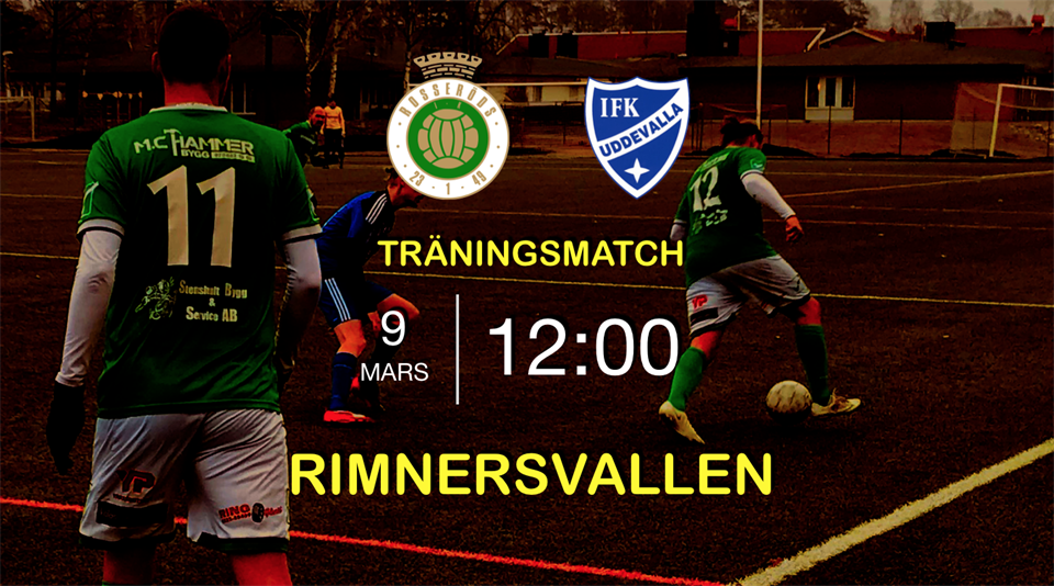 Denna gången är det IFK Uddevallas U19 som står för motståndet. Rosseröds IK - IFK Uddevalla U19 Avspark lördag den 9 mars kl. 12:00 på Rimnersvallens konstgräs. Välkomna!