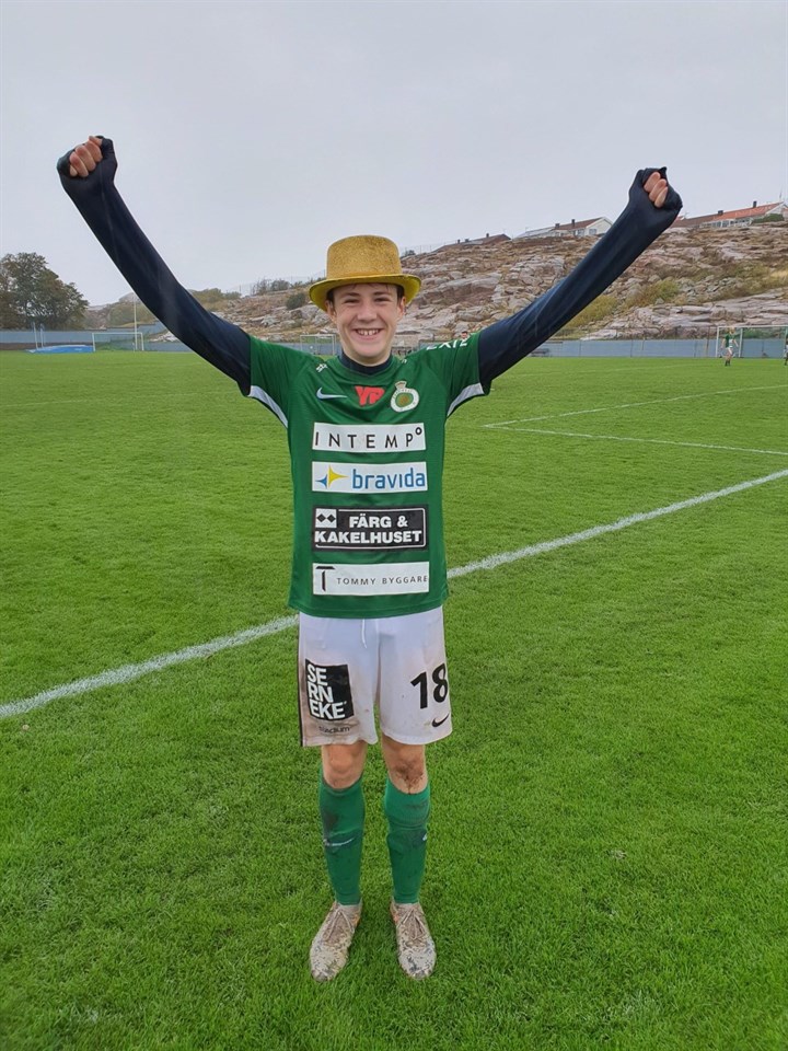 Efter gårdagens firande och lite sovmorgon:-) så kommer här lite fler rader om gårdagen. Jag måste erkänna att det var lite nervöst inför matchen igår. Inte bara för att vi hade en chans att spela hem seriesegern, utan också för att vädret med vindar och regn skulle innebära en tungsprungen plan som inte direkt gynnar ett bolltrillande lag som oss. Ett stort antal tillresande RIK-supportrar fick se ett piggt RIK som direkt tog tag i matchen. Därför blev det en riktig kalldusch när Lysekil tog ledningen i den 10:e minuten. Samtidigt hade vi hört att Skärhamn redan startat målproduktionen mot Grohed, så då var det skakigt bland oss i publiken. Det gällde dock inte spelarna som tur var, för redan 3 minuter efter Lysekils ledningsmål kunde vi kvittera till 1-1 genom Ismail "Isse" Fazlija. Resten av halvleken var RIKs. Det enda som hindrade oss från ytterligare mål i halvleken var en storspelande Lysekilsmålvakt. För övrigt min kusin Conny Karlsson:-) Jag var inte glad på honom i halvlek! Andra halvlek fortsatte som den första avslutades: RIK-press som gav utdelning i den 60e minuten när "Isse" gjorde sitt andra mål för dagen, och säcken knöts ihop när Kevin Scott kunde sätta 3-1 i den 70e minuten. Resten av matchen blev mest att bevaka segern på en blöt och tungsprungen plan. Våra killar plockade fram de där extra krafterna, och stort jubel såklart när domaren blåste för full tid! 11:e raka segern, och avancemang till Div 4 var ett faktum:-) Kan inte motså att lägga upp en bild på vår 15-årige "högerkantsexpress" Adam Stroud, som fick kröna sin debutsäsong i A-laget med en serieseger! Bra jobbat, Adam! En fantastisk säsong fick ett perfekt avslut för ett härligt gäng fotbollsspelare och personligheter!