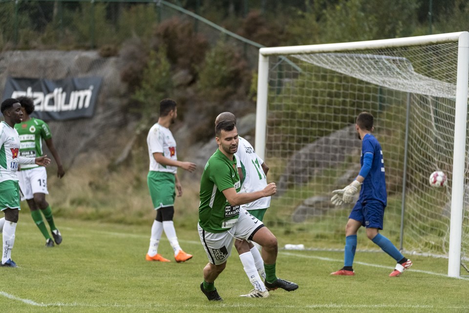 På ett soligt och varmt Lövängens IP i Varekil spelades igår matchen mellan Stala IF och RIK. Så som serien utvecklats är varje match mycket viktig för RIK som topplag, och där Skärhamn är hack-i-häl. Det var ett taggat RIK som satte högsta fart från matchstart. Inte minst gällde det vårt löfte Adam Stroud som direkt utmanade Stalaförsvaret på sin högerkant med flera fina löpningar. RIK:s press gav utdelning i den 14:e minuten då Abass Hussein kunde sätta 1-0 efter fint förarbete av Adam Stroud. 3 minuter senare kommer 2-0 genom en frispark direkt i mål av Ismail "Isse" Fazlija (se bild). Resten av första halvlek sattes Stala ständigt under press, och det kunde lika gärna stått 4-0 i halvlek. Stala försökte kontra men Craig Stephenson i Rosserödsmålet ställdes inte inför några särskilt stora prövningar. Andra halvlek startade som den första avslutades: press från RIK vilket direkt resulterade i 3-0 genom Filip Olsson i den 47:e matchminuten. Spelet mattades något i mittendelen av andra halvlek där Stala fick några möjligheter som Craig Stephenson avvärjde. Mer mål skulle det bli och 4-0 kom i den 70:e minuten när "Isse" gjorde sitt andra mål för dagen. I den 81:a minuten gjorde inbytte Mathias Carlsson 5-0 på nick. Målfabrikationen avslutades i matchminut 83 med 6-0 genom David Andreasson. Målen i sammanfattning: 0-1, 14 min Abass Hussein 0-2, 17 min Ismail Fazlija 0-3, 47 min Filip Olsson 0-4, 70 min Ismail Fazlija 0-5, 81 min Mathias Carlsson 0-6, 83 min David Andreasson En stabil RIK-seger! För oss som var och tittade på så övergick intresset så småningom till att hålla koll på toppmötet Lysekil-Skärhamn där vår förhoppning stod till Lysekilsseger, eller åtminstone ett oavgjort resultat. Nu blev det Skärhamnsseger med 1-0, och fortsatt tätt i tabellen där Skärhamn jagar oss. Det skiljer 3 poäng och fördel Skärhamn när det gäller målskillnad. Minst en kvalplats till division 4 är säkrad för Rosseröd, då vi som sämst kan komma tvåa i årets seriespel efter gårdagens resultat. RIK har ev serieseger i egna händer, men då krävs det att man tar 4 poäng på dom två återstående matcherna mot IFK Lane hemma på Hedevallen på söndag, och Lysekil borta den 4 oktober. Grattis, laget, till segern och fortsatt serieledning!
