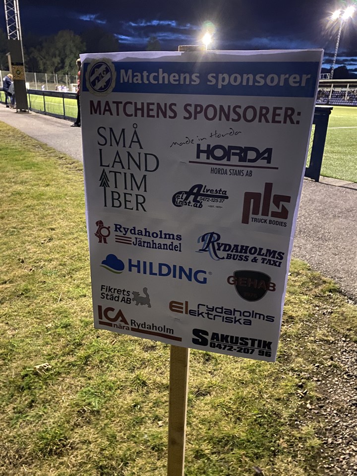 På fredag 16/9 är det fritt inträde tack vare våra fantastiska sponsorer i derbyt mot Ryssby. Vid hemmaseger så säkras nytt kontrakt i div 5 så det finns all anledning att ta sig till Kungshall. Ryssby ligger på 9e plats och kämpar i sin tur för att undvika kval. Alla barn och ungdomar under 15 år bjuds på korv med bröd Stort tack till följande sponsorer som bjuder på inträdet: Ica Nära - Smålands Timber - Rydaholms Järn - Fikrets Städ - S-Akustik - Gehab - Horda Stans - Hilding Anders - Rydaholms El - Alvesta El - Rydaholms Buss - PLS Avspark 19.00 Hjärtligt Välkomna Rydaholms GoIF 14 sep 2022 0kommentarer