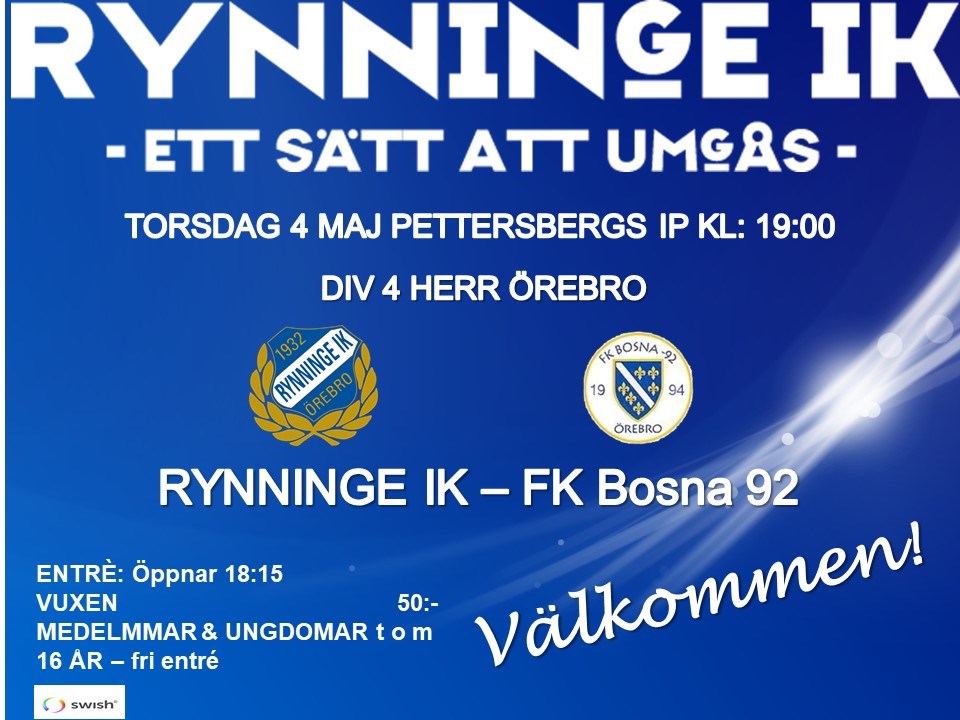 Toppmöte på Pettersbergs IP - torsdag 4 maj klockan 19:00. Nu på torsdag möter vårat herrlag FK Bosna 92 i en toppmatch i DIV 4 Herr Örebro. Välkomna! Herrlaget 1 maj 2023
