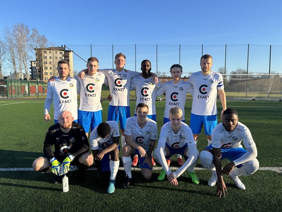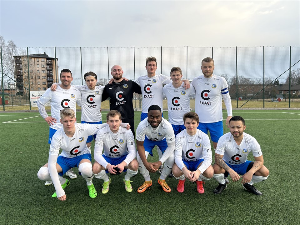 Äntligen premiär och det märks att spelarna är taggade och sugna på att dra igång detta. Det märktes extra tydligt även i upptakten av matchen. Två snabba fina spelmål från våran Eti där Charlie står för två fantastiska assister. Tidig 2-0 ledning och allt är frid och fröjd… eller? Marieberg kommer igång och vi hamnar helt fel i våra positioner och blir nedtryckta. Vi kommer inte ur greppet men spelarna krigar för varandra, stöttar varandra och vi lyckas rida ut stormen till paus. Extra eloge till Eldin som styr hela tiden och gör några riktigt fina räddningar. Paus och vi pustar ut.. I paus är alla medvetna att så här ska det inte vara. Nerverna har lagt sig och vi kommer ut som ett helt annat lag i andra. Vi tar kommandot och skapar målchanser för att döda matchen tidigt. Vi lyckas inte få in bollen men en väldigt stabil försvarsinsats ger oss möjligheten till att ha tålamod och fortsätta trycka på för den dödande stöten. Frispark på egen planhalva, Pirlo-passning av Tim bakom backlinjen, Holm löper sig fri, slår in bollen till en fri debuterande Benji som stöter in 3-0. Benji skulle få presentera sig igen i slutet av matchen när, hör och häpna, nyinbytte David Küster (ca 160cm) VINNER nickduellen med en Ronaldoliknande spänst på en fantastisk frispark av Simon mot Mariebergs tankar till mittbackar. Nicken går i ribban och flygandes kommer Benji för att stöta in bollen. 4-0, matchen slut, hållen nolla och 3 poäng. Det enda Coach Dragan önskade sig i födelsedagspresent och grabbarna levererade just det. Vi rullar vidare…