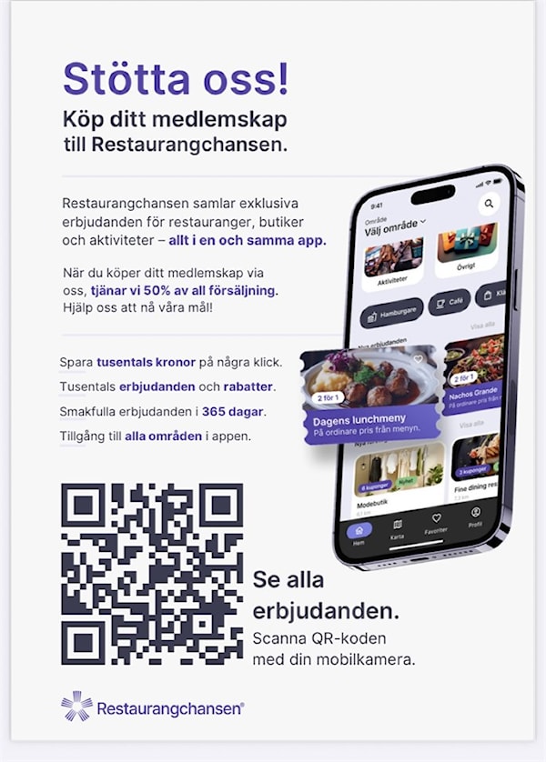Hämta Restaurangchansen tisdagen 30 september klockan 15:00-18:30 på Klubbhuset, Pettersbergs IP (Ringstorpsvägen 20).