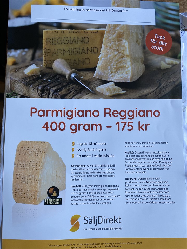 • Parmesanförsäljning