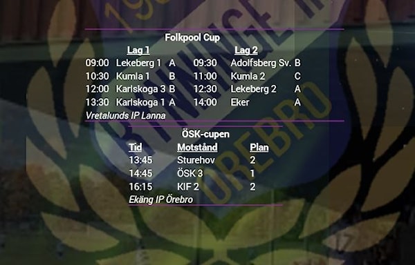 Här kommer info inför lördagens cuper i Lanna och på Ekäng IP i Örebro. Spelschema för båda cuperna finns under dokument.