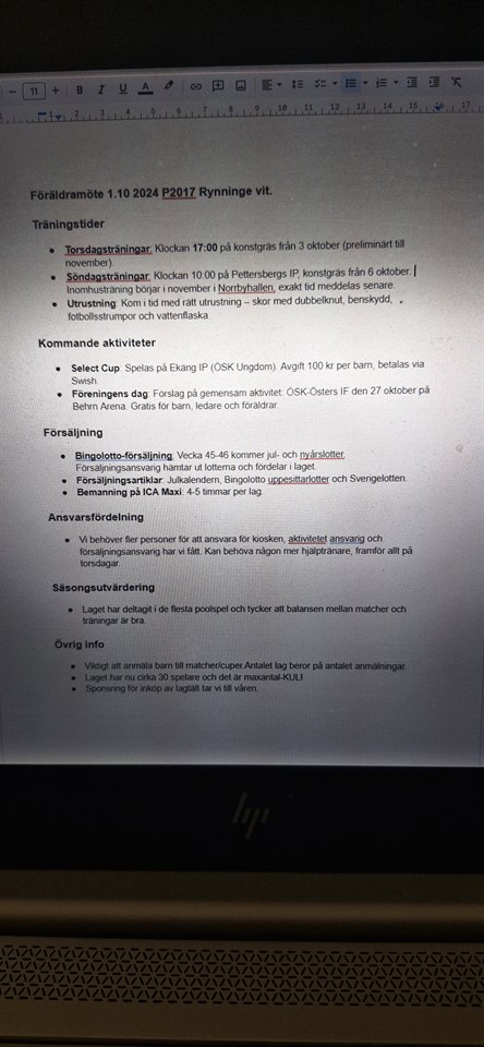 Hej! Tack för ert engagemang på föräldrarmötet och ett stort tack till Jeanette som skrev minnesanteckningarna. Minnesanteckningarna publiceras här genom en bildfil Återkom gärna med ytterligare förslag, synpunkter eller feed-back så vi utveckla verksamheten för våra barn